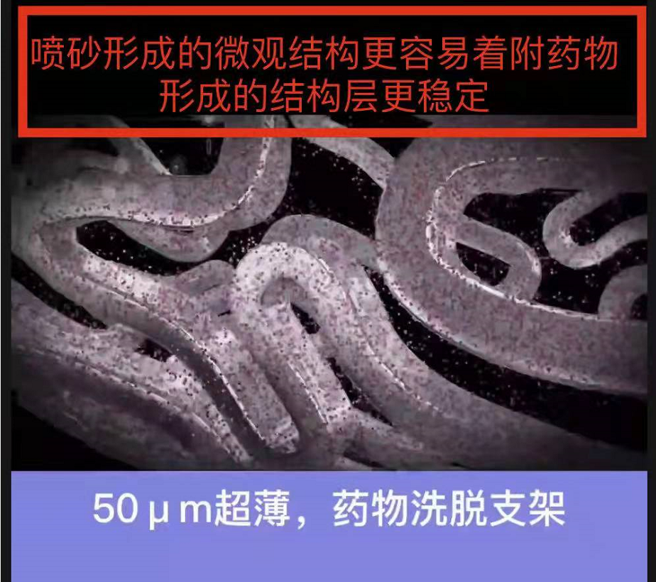 - 喷砂形成微观结构更容易着附药物形成的结构层更稳定